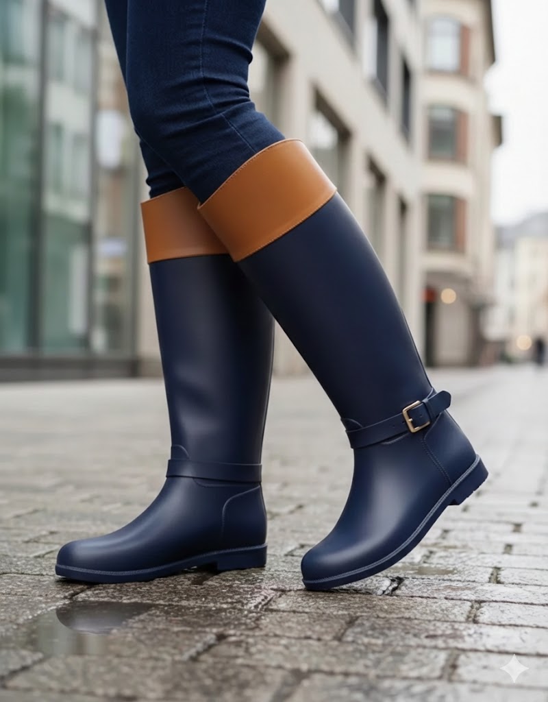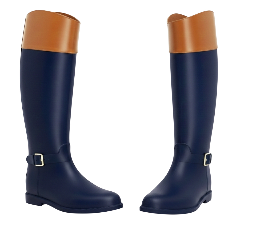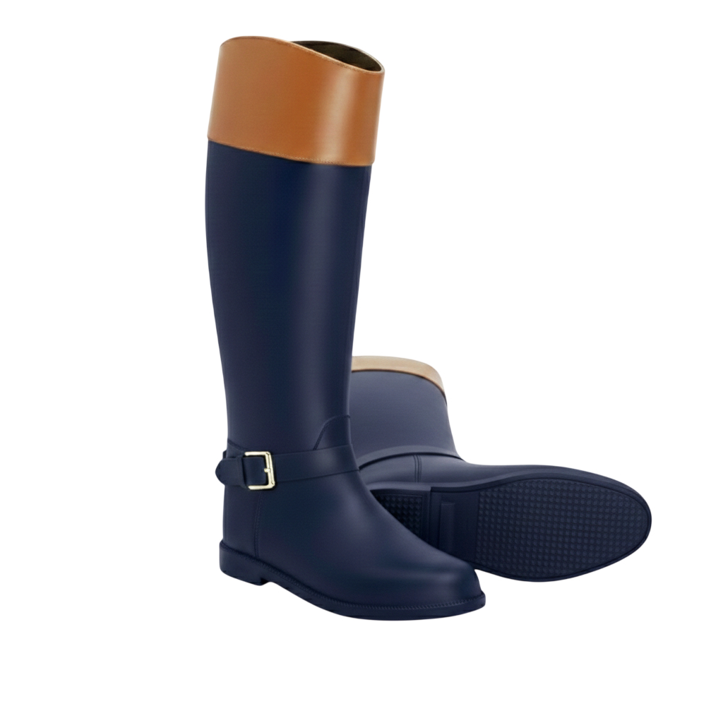 Botas Lluvia Luxury Eternity Buckle Azul / Camel